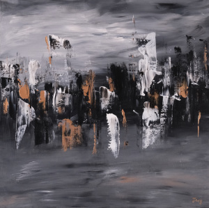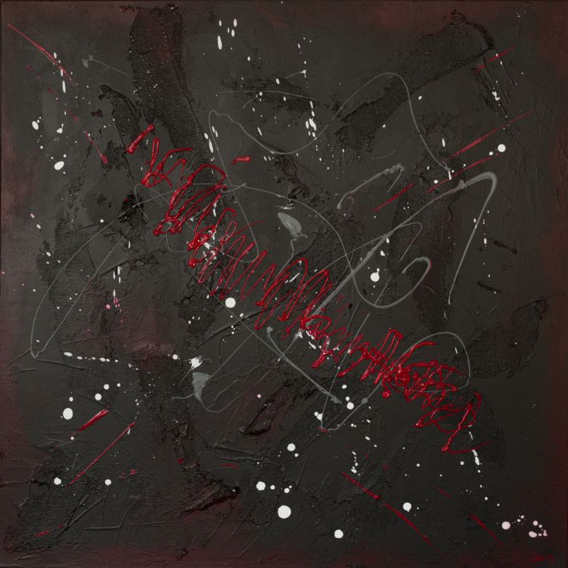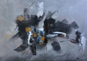 Dimensions de la toile : 40 cm X 30 cm X 1,5 cm – bords peints noir noir